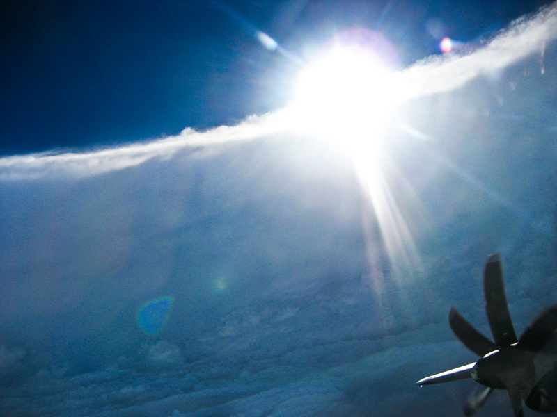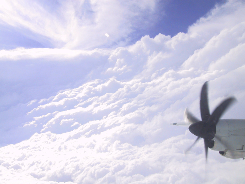 The eyewall clouds surround the plane as we pass through the middle of Hurricane Katrina in 2005.