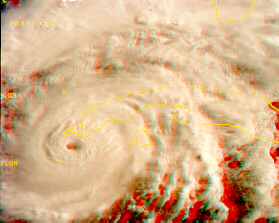 Click HERE to view a 3-D hurricane. Use a pair of 3-D glasses to view this picture, or make a set by putting a piece of green (or blue) cellophane (thin plastic) over the left eye, and red cellophane over the right eye.
